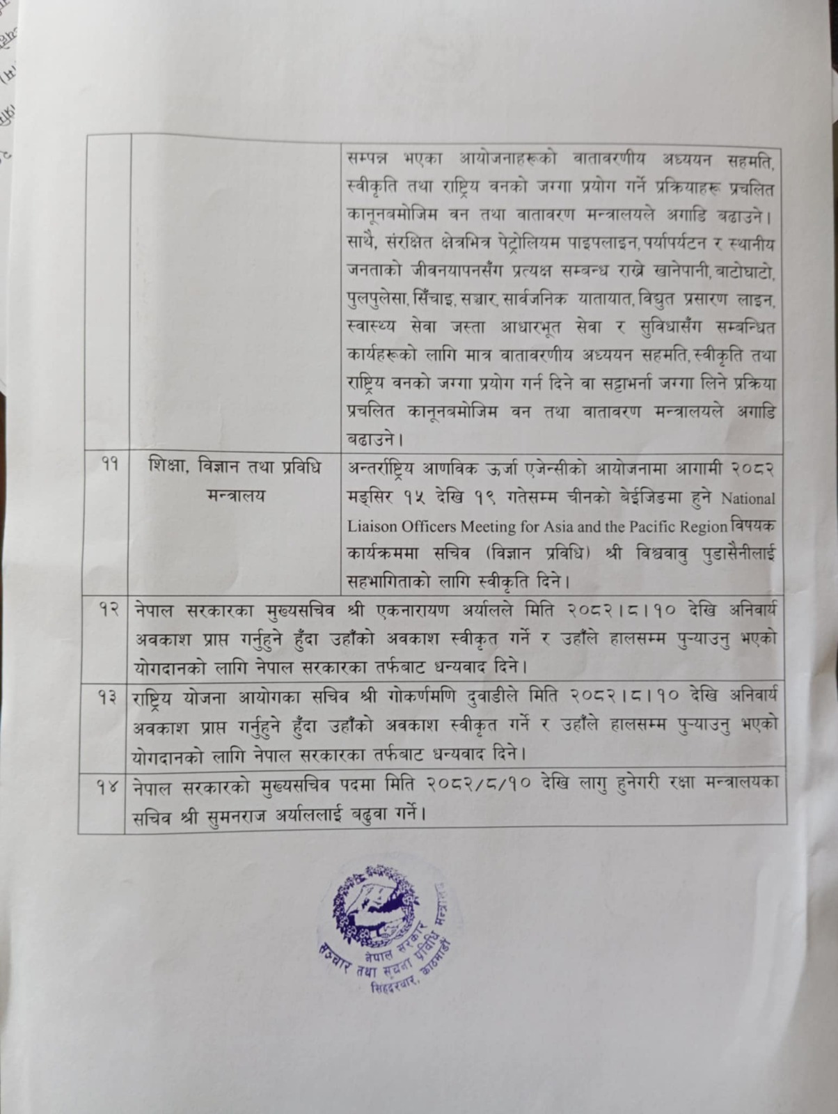 काठमाडौं । सरकारले पछिल्लोपटक बसेको मन्त्रिपरिषद् बैठकका निर्णय सार्वजनिक गरेको छ ।